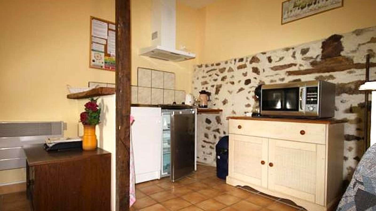 Situé dans un cadre sympathique et chaleureux de la campagne de Charente-Limousine, ensemble de 6 gîtes avec piscine commune (non surveillée), salle d'information/bibliothèque, wifi, terrain de jeux, pétanque, abri à vélos et itinéraires pédestres. Le gîte "La Vienne" est un appartement pour 4 personnes (2 adultes + 2 enfants) situé au 1er étage comprenant : séjour, cuisine ouverte avec plaques électriques, 1 chambre (1 lit double et 2 lits superposés), salle d'eau et wc. Animaux acceptés.