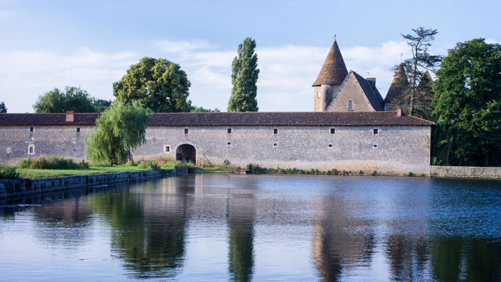 Au coeur d'une propriété de 5 hectares avec son château des XIV et XVèmes siècles (ISMH), et dans un cadre bucolique très calme, vous appréciez la nature préservée. Gîte de plain-pied attenant à un autre gîte (sans vis-à-vis) dans les bâtiments du château. Grand séjour/cuisine (46 m2), 1 ch. accessible PMR (2 lits 90) avec salle d'eau ouverte et wc. Terrasse. En commun avec l'autre gîte : salle de jeux (avec cheminée, bibliothèque, jeux de société, lecteur DVD), buanderie, orangerie, cour, jardin, terrain 5 ha avec étang, jeux, barque. Garage, parking. Ménage fin de séjour, draps, linge de toilette et cuisine inclus. Taxe de séjour incluse.