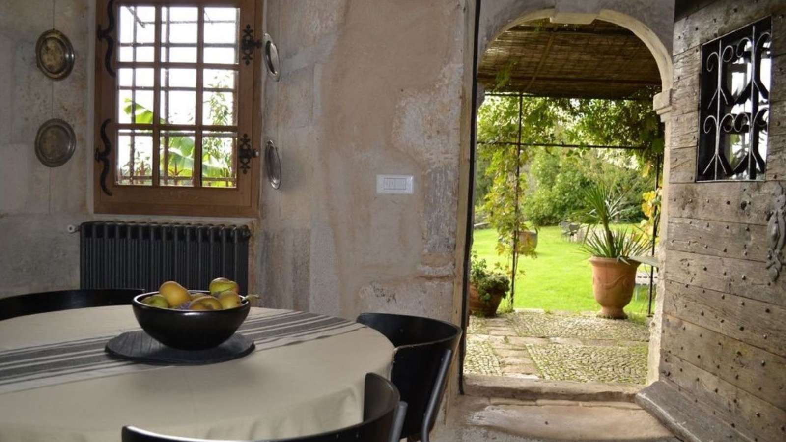 Alliance du mobilier design et du bâti ancien, et superbe vue sur la vallée pour cet ancien prieuré transformé en gîte grand confort. Cet ancien prieuré (XVème siècle, modifié au XVIIIème) où se marient harmonieusement architecture ancienne et décoration design, offre une superbe vue sur la vallée. Au rez-de-chaussée : belle entrée avec dallage traditionnel en coeurs de demoiselles, séjour avec cheminée, regroupant cuisine et salle à manger, salon (avec cheminée, canapé, TV, lecteur DVD, radio lecteur CD). A l'étage : une chambre avec lit 180x200, télévision et salle d'eau ouverte (très grande douche), wc. Bois inclus pour les cheminées. Draps, linge de toilette et de cuisine fournis, lits faits à l'arrivée. Lit parapluie et chaise haute à disposition. En rez de jardin : lingerie et wc indépendants. Terrasse, cour, jardin clos privatif 2000 m² dominant la vallée, jeux, WIFI. Possibilité d'utiliser la piscine des propriétaires située à 3km, de 14h à 19h (forfait 100€/semaine).