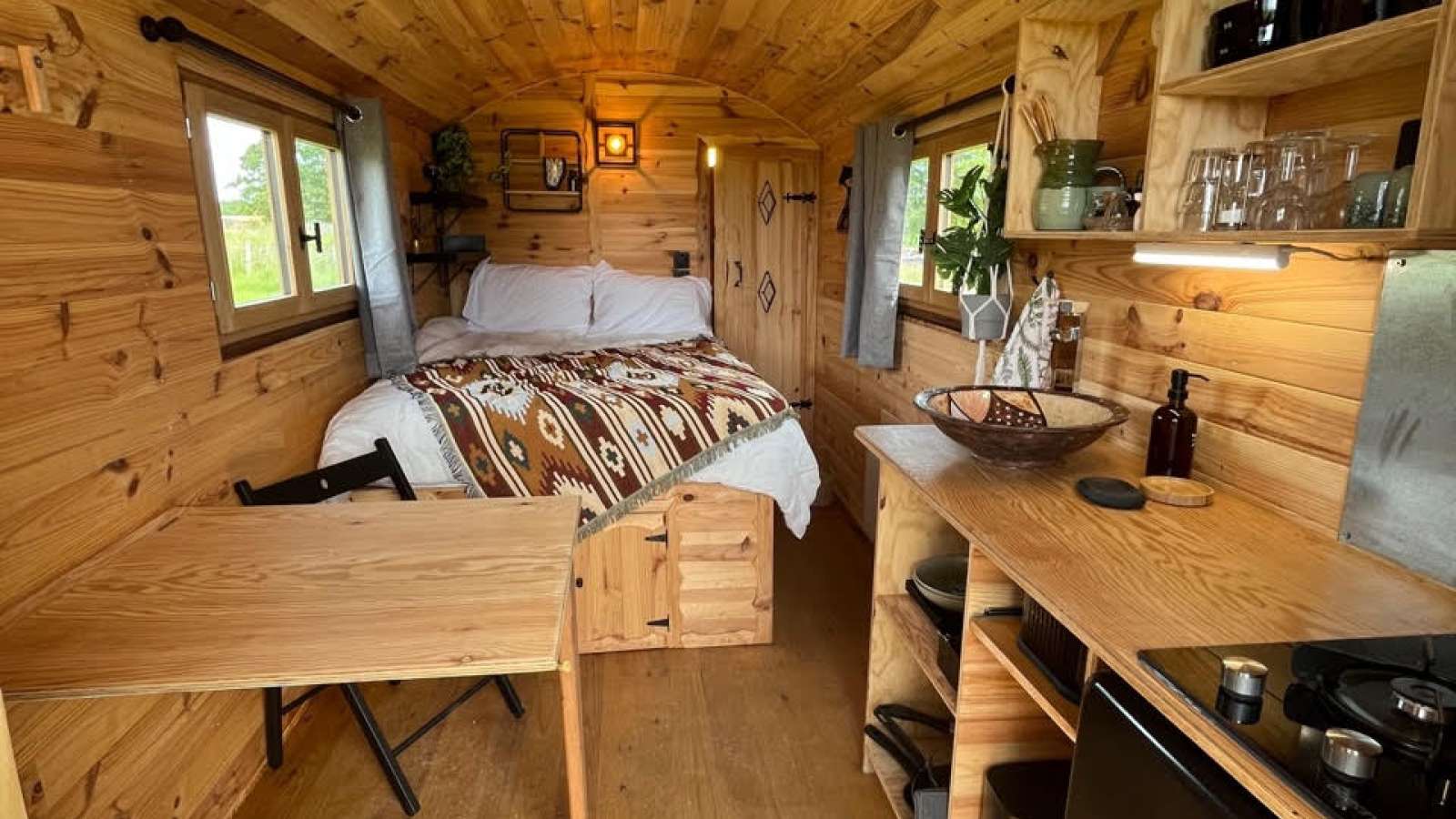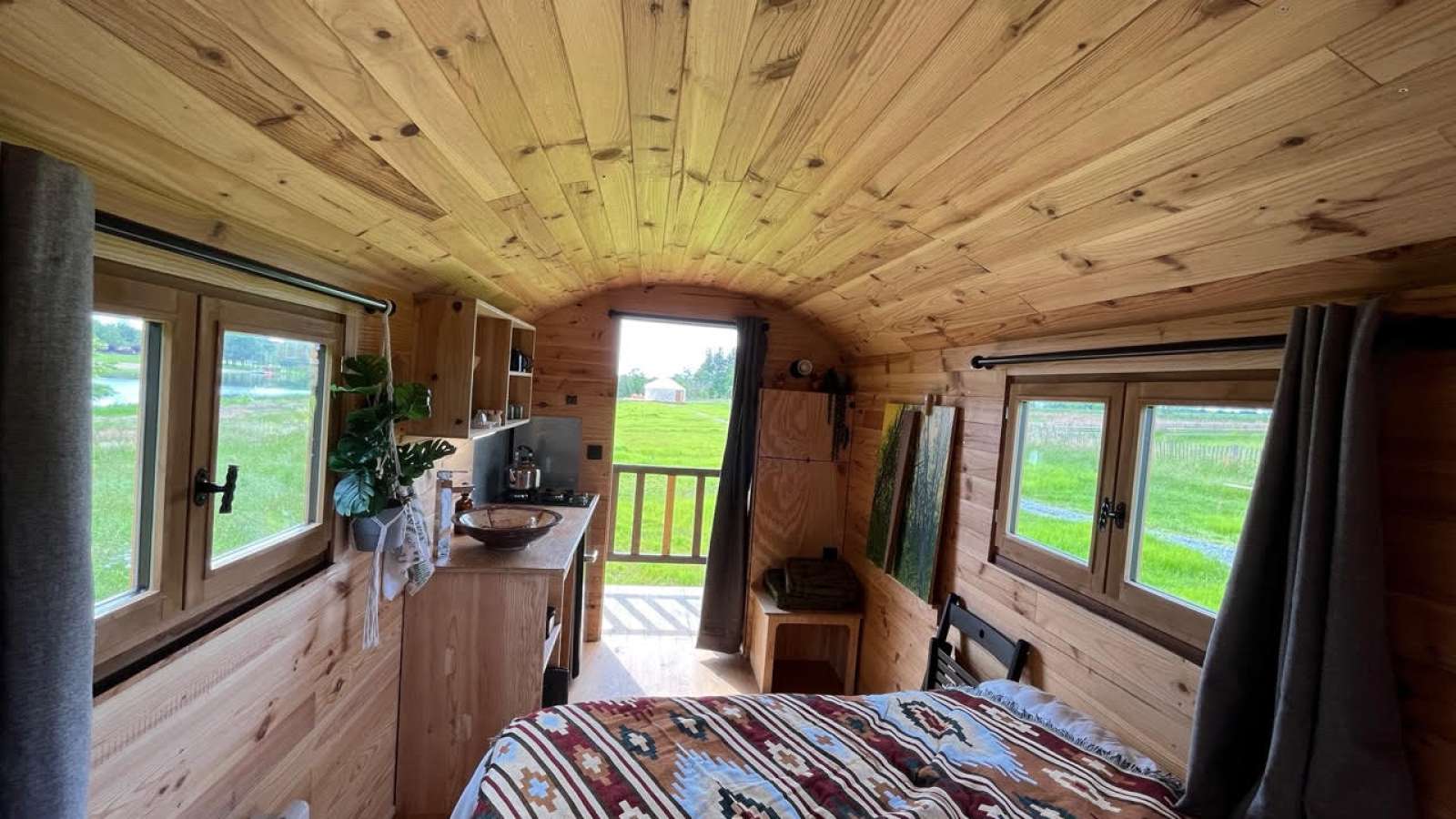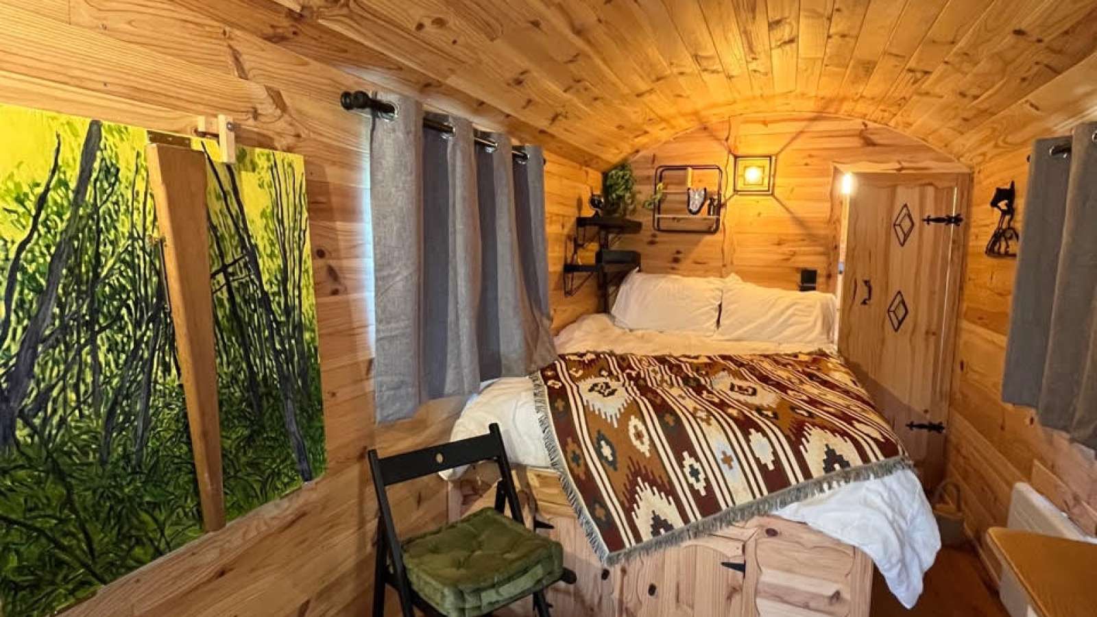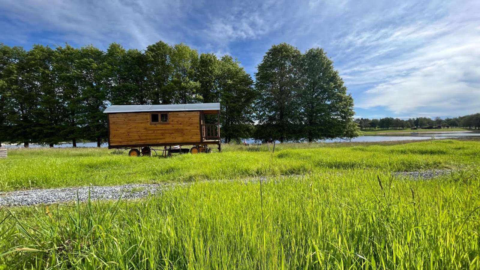 Roulotte dansun parc en écopaturage, évadez-vous sous les étoiles Cette roulotte bénéficie d'une superbe vue sur le lac et d'espaces ombragés. Venez profitez du calme du lac en arrière saison et de toutes les animations d'été. Tout confort avec une douche et wc, kitchinette équipée, salon de jardin, hamac, etc, plage, sentier de randonnée, balade à cheval ou à vélos et balade nautique à proximité du site.